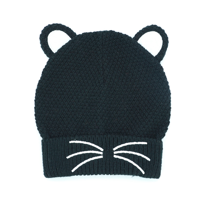 Pompom Beanies with Cat Beard Embroidery